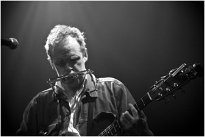 Sur scène, j’ai été surpris par sa grande tranquillité, la lenteur puissante avec laquelle il change d’instruments, ajuste son harmonica ; lenteur de rythme surtout apportant à l’ensemble une profondeur. Par cette dynamique ces chansons gagnent en précision, exprimant aussi une sécheresse digne du meilleur Neil Young (influence majeure et jamais démentie de Silvain Vanot).