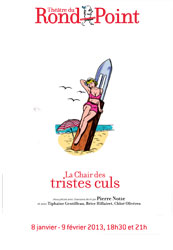 Dans "La Chair des tristes culs" se retrouvent les mêmes comédiens que dans "Sortir de sa mère", l’autre spectacle avec lequel il compose ce diptyque, mais dans une forme cette fois plus théâtrale : que ce soit la scénographie superbe réalisée par des élèves de l'Institut supérieur des arts appliqués de Paris) ou la trame narrative avec des personnages plus développés.