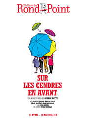 L’auteur associé du Théâtre du Rond-Point revient à la musique, lui qui s’est fait une spécialité de spectacles-cabaret ("Sortir de sa mère"), avec "Sur les cendres en avant", authentique comédie musicale, chantée d’un bout à l’autre et ressuscite un genre oublié, sauf par les grosses productions à l’américaine.