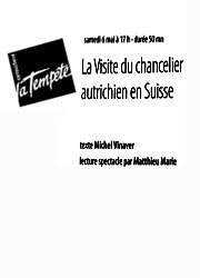 Il s'en expliquera par une intervention au pupitre, dont le contenu sera ensuite publié sous le titre "La Visite du chancelier autrichien en Suisse" que le comédien Matthieu Marie propose de découvrir en portant sobrement la parole de son auteur qui n'a rien perdu de son acuité.