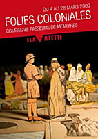 A la pièce à thèse ou au théâtre-action, il a préféré la mise en exergue, et en abîme, des textes bruts de toute obédience qui se suffisent à eux-mêmes, des discours officiels aux témoignages en passant par les écrits littéraires et les chansons, dans un petit théâtre, celui bien nommé "Folies coloniales", dans lequel va se dérouler un spectacle burlesque qui prend parfois des allures d'opéra-bouffe.