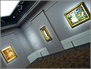 Scénographiée avec élégance par Hubert Le Gall, qui use du trompe-l'oeil pour évoquer tentures et murs marbrés des palais antiques, elle propose au visiteur un parcours enchanteur pour le regard qui ne manque pas d'interpeller d'autres sens par le contenu subliminal d'oeuvres d'apparence sulpiciennes.