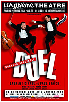 Un violoncelle qui dérape, un spot qui fait des siennes, un ego contrarié, et voilà la belle harmonie du duo concertiste qui se transforme en "Duel" à archet moucheté et à clavier non tempéré pour deux frères ennemis qui partagent la même passion pour la musique, le goût de l'expérimentation interprétative et un certain humour noir.